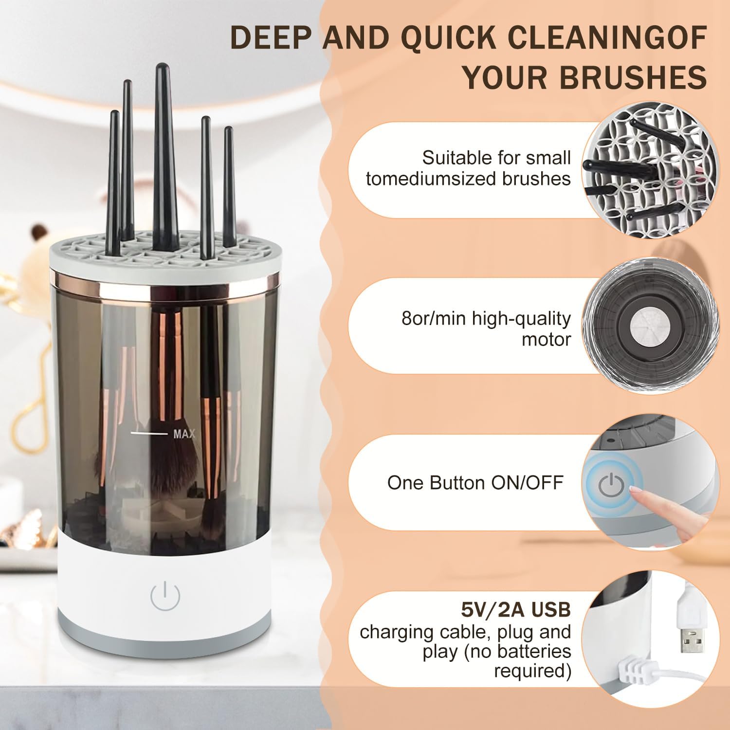 ✅ Tecnologia Ultrassónica para Limpeza Eficaz: Com vibrações ultrassónicas, este limpador remove toda a sujidade dos seus pincéis de maquilhagem de forma suave, preservando a qualidade e a forma das cerdas. 🌟